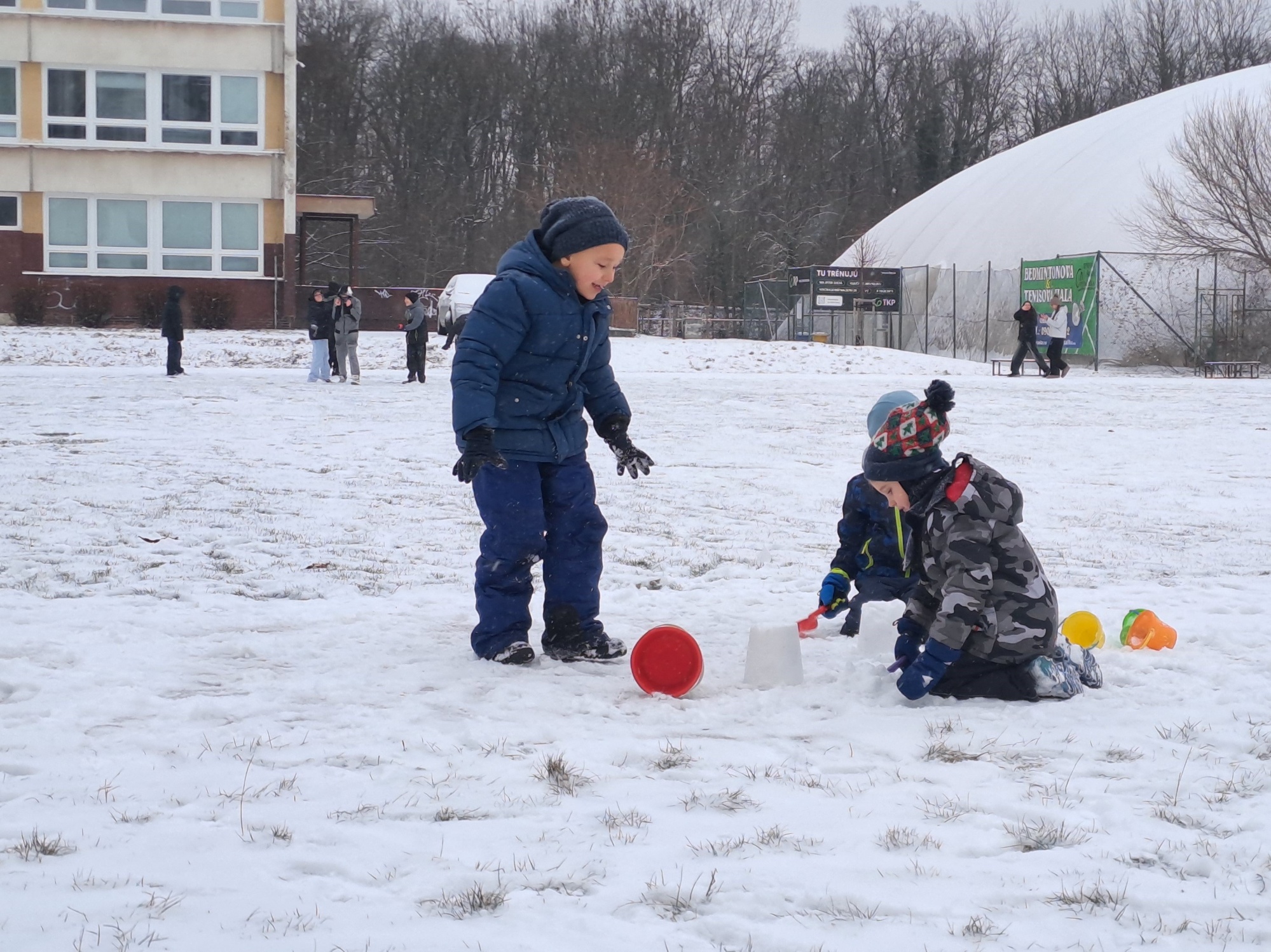 Druhý deň v škole po prázdninách nás potešila aspoň malá nádielka snehu. Doobeda sme ju využili na zimnú prechádzku s deťmi a popoludní na hry v mini snehu.